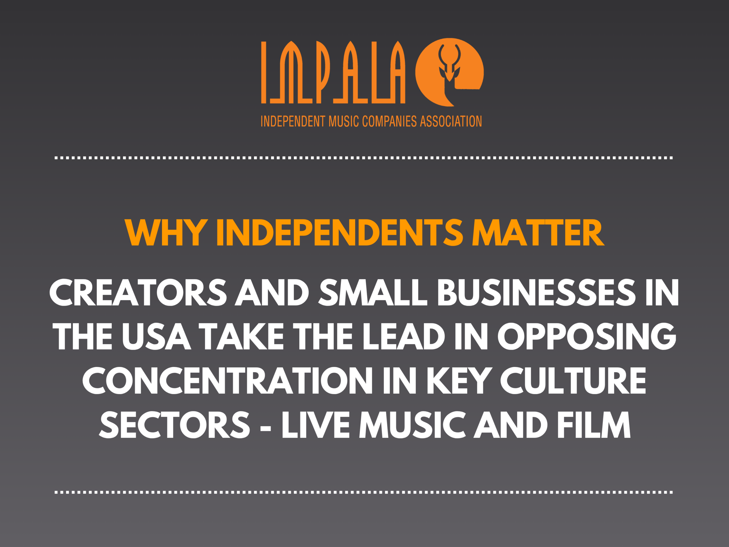 WHY INDEPENDENTS MATTER – CREATORS AND SMALL BUSINESSES IN THE USA TAKE THE LEAD IN OPPOSING CONCENTRATION IN KEY CULTURE SECTORS, LIVE MUSIC AND FILM