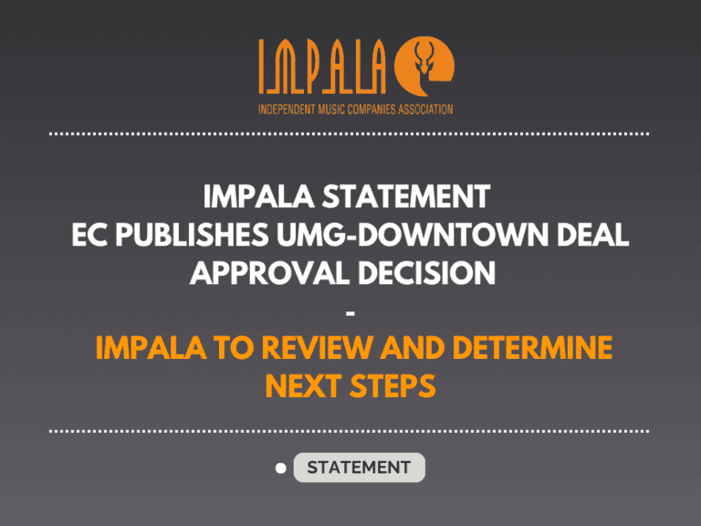 On Friday, 24th April, the European Commission published their UMG-Downtown deal approval decision. IMPALA welcome the publication and will be reviewing the decision to determine next steps and consider whether an appeal or other action is required.