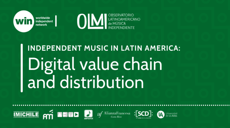 “La música independiente en Latinoamérica: cadena de valor y distribución digital” has been commissioned by WIN and developed by an interdisciplinary team of experts from OLMI, in collaboration with trade associations ABMI, IMICHILE and AMI PY, as well as AMPROFON, Sociedad Chilena de Autores e Intérpretes Musicales (SCD), Alianza Francesa Costa Rica and Universidad de los Andes.