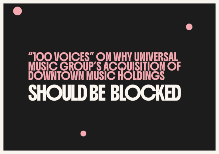 Independent music leaders today published 100 Voices, a campaign with a clear message – Universal Music Group’s proposed acquisition of Downtown Music Holdings should be blocked.