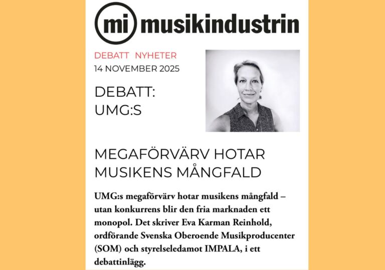 “Eva Karman Reinhold, chairwoman of the Swedish Independent Music Producers (SOM) and board member of IMPALA, writes in a debate post.